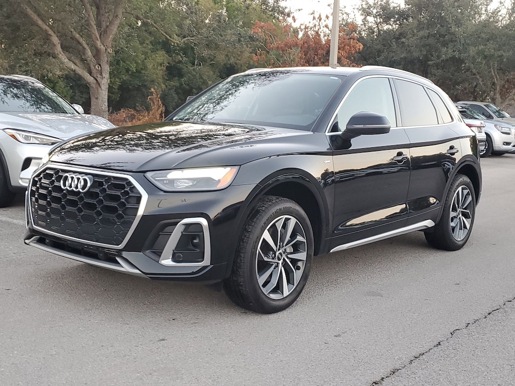 Recent Arrival! 2023 Audi Q5 45 S line Premium quattro ** PREMIUM PACKAGE **, ** CLEAN CARFAX **, ** QUATTRO ALL WHEEL DRIVE **, Adaptive Cruise Control, Apple Carplay/Android Auto, Automatic Emergency Braking, Backup Camera, Blind Spot Monitor, Bluetooth, Homelink, Keyless Start, Keyless Entry, Lane Departure Warning, Rear Cross Traffic Alert, Stability Control, USB Port, Black w/Leather Seating Surfaces, 10 Speakers, Audi Advanced Key, Audi Beam-Rings, Auto-Dimming Power Folding Exterior Mirrors, Auto-dimming Rear-View mirror, Brake assist, Convenience Package, Driver Seat Memory, Electronic Stability Control, Exterior Parking Camera Rear, Front dual zone A/C, Front fog lights, Heated 8-Way Power Front Bucket Seats, Heated Steering Wheel, Illuminated entry, Leather Shift Knob, Panoramic Sunroof, Power Liftgate, Radio: Audi Sound System, Rain sensing wipers, Rear fog lights, Remote keyless entry, Security system, SiriusXM w/360L, Speed-sensing steering, Speed-Sensitive Wipers, Steering wheel mounted audio controls, Traction control, Wheels: 19" 5-Double-Arm Design Bi-Color Finish. Mythos Black Metallic 2.0L Turbocharged quattro 7-Speed Automatic S tronic