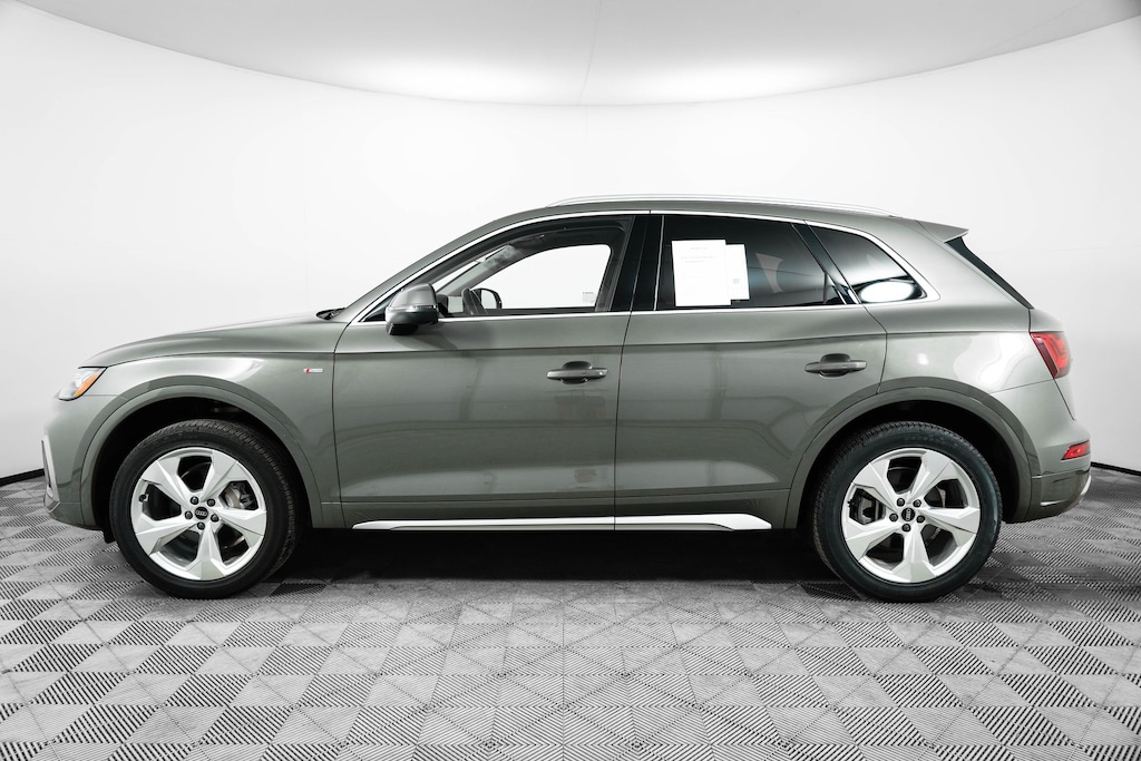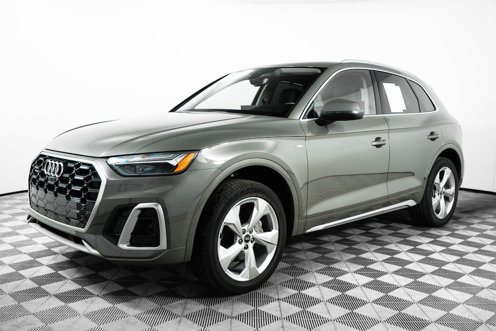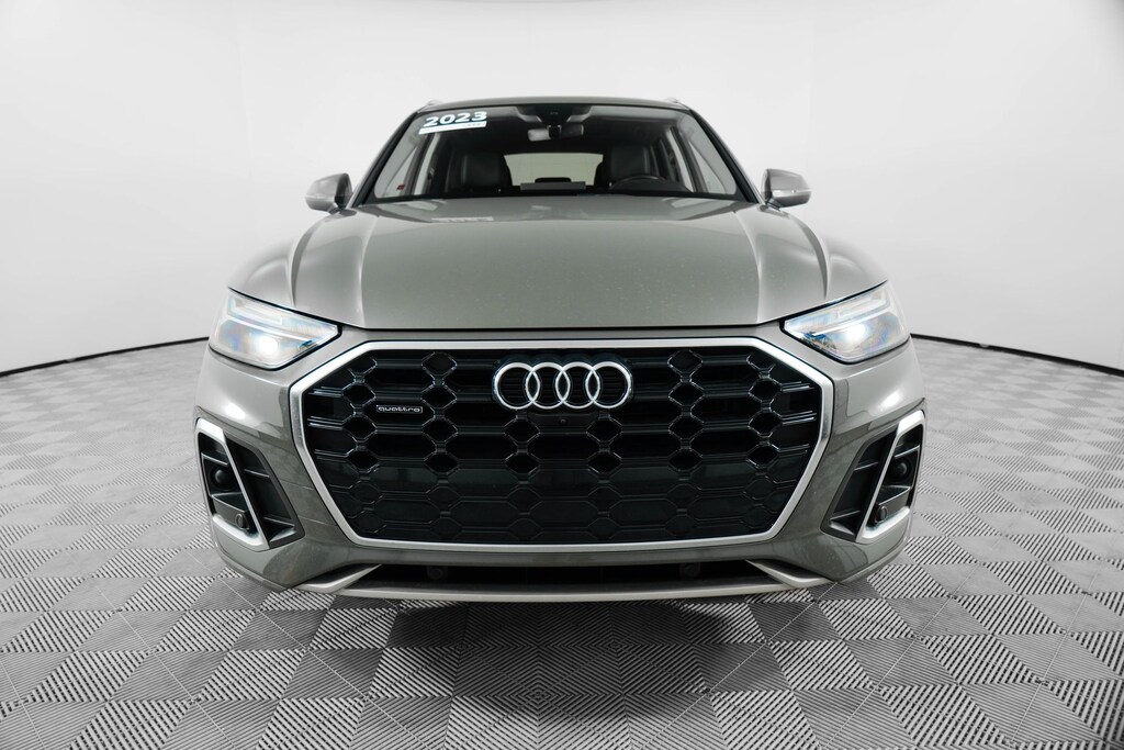 Recent Arrival! 2023 Audi Q5 45 S line Premium quattro !! AUDI CERTIFIED !!, ** PREMIUM PLUS **, ** QUATTRO ALL WHEEL DRIVE **, Adaptive Cruise Control, Apple Carplay/Android Auto, Automatic Emergency Braking, Backup Camera, Blind Spot Monitor, Bluetooth, Homelink, Keyless Start, Keyless Entry, Lane Departure Warning, Rear Cross Traffic Alert, Stability Control, USB Port, Black w/Leather Seating Surfaces, Audi Active Lane Assist, Audi Connect PLUS, Audi Virtual Cockpit Plus, Auto-dimming Rear-View mirror, Bang & Olufsen Sound System w/3D Sound, Brake assist, Convenience Package, Electronic Stability Control, Exterior Parking Camera Rear, Front dual zone A/C, Front fog lights, Hands-On Detection Steering Wheel, Heated 8-Way Power Front Bucket Seats, Illuminated entry, Leatherette Covered Center Console & Door Armrests, Manual Rear Side Window Sunshades, MMI Navigation Plus, Navigation Package, Panoramic Sunroof, Power Adjustable Steering Column, Power Liftgate, Premium Plus Package, Rain sensing wipers, Rear fog lights, Remote keyless entry, Security system, SiriusXM w/360L, Speed-sensing steering, Speed-Sensitive Wipers, Steering wheel mounted audio controls, Top View Camera System, Traction control, Traffic Jam Assist, Ventilated Front Sport Seats w/4-Way Power Lumbar, Warm Weather Package, Wheels: 20" 5-Arm Design. Chronos Gray Metallic 2.0L Turbocharged quattro 7-Speed Automatic S tronic