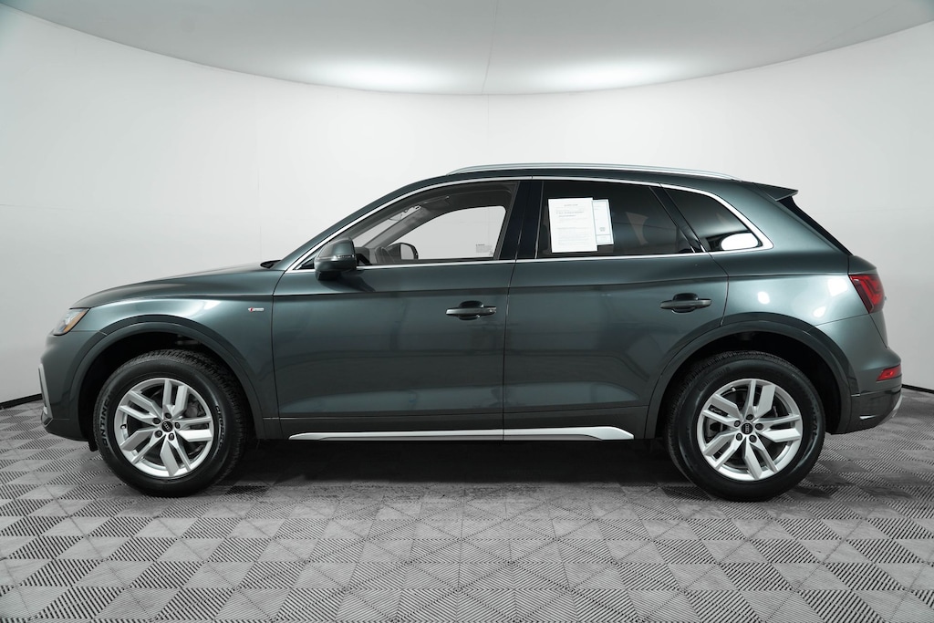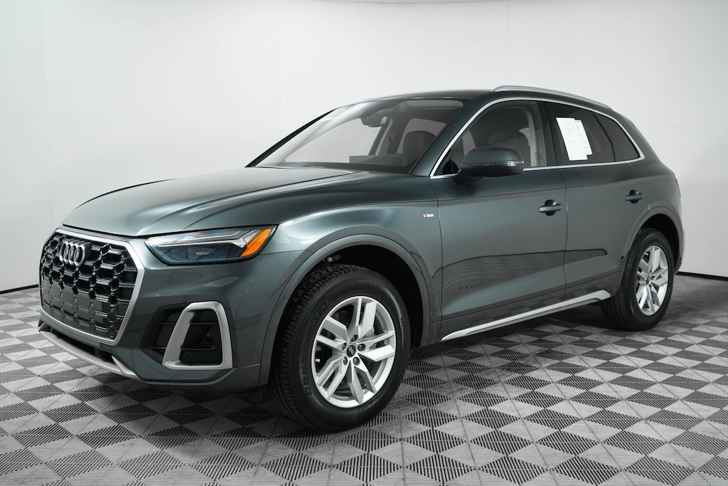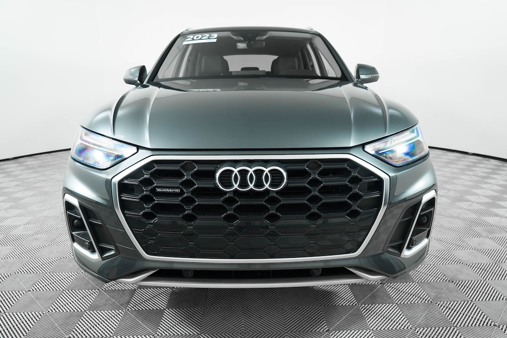 Recent Arrival! 2023 Audi Q5 45 S line Premium quattro !! AUDI CERTIFIED !!, ** PREMIUM PACKAGE **, ** QUATTRO ALL WHEEL DRIVE **, Adaptive Cruise Control, Apple Carplay/Android Auto, Automatic Emergency Braking, Backup Camera, Blind Spot Monitor, Bluetooth, Homelink, Keyless Start, Keyless Entry, Lane Departure Warning, Rear Cross Traffic Alert, Stability Control, USB Port, Black w/Leather Seating Surfaces, 10 Speakers, Audi Advanced Key, Audi Beam-Rings, Auto-Dimming Power Folding Exterior Mirrors, Auto-dimming Rear-View mirror, Brake assist, Convenience Package, Driver Seat Memory, Electronic Stability Control, Exterior Parking Camera Rear, Front dual zone A/C, Front fog lights, Heated 8-Way Power Front Bucket Seats, Heated Steering Wheel, Illuminated entry, Leather Shift Knob, Power Liftgate, Radio: Audi Sound System, Rain sensing wipers, Rear fog lights, Remote keyless entry, Security system, SiriusXM w/360L, Speed-sensing steering, Speed-Sensitive Wipers, Steering wheel mounted audio controls, Traction control, Wheels: 18" 5-Arm-Turbine Design. Daytona Gray Pearl Effect 2.0L Turbocharged quattro 7-Speed Automatic S tronic