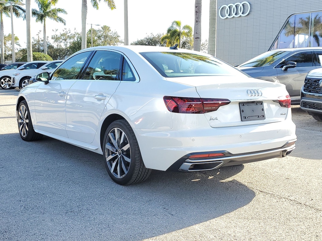 Recent Arrival! 2024 Audi A4 40 Premium quattro !! AUDI CERTIFIED !!, ** QUATTRO ALL WHEEL DRIVE **, Adaptive Cruise Control, Apple Carplay/Android Auto, Automatic Emergency Braking, Backup Camera, Bluetooth, Homelink, Keyless Start, Keyless Entry, Lane Departure Warning, Remote Start, Stability Control, USB Port, 7-Speed Automatic S tronic, quattro, Black w/Leather Seating Surfaces, 10 Speakers, 18" Wheel Package, Alarm System w/Motion Sensor, Audi Advanced Key, Audi Side Assist w/Pre Sense Rear, Auto-Dimming Exterior Mirrors w/Memory, Auto-dimming Rear-View mirror, Brake assist, Convenience Package, Electronic Stability Control, Exterior Parking Camera Rear, Front dual zone A/C, Front fog lights, Fully automatic headlights, Heated Front Bucket Seats, Illuminated entry, Leather Shift Knob, Leather steering wheel, Memory for Driver's Seat, Power moonroof, Radio: Audi Sound System, Rain sensing wipers, Remote keyless entry, SiriusXM w/360L, Speed-sensing steering, Speed-Sensitive Wipers, Steering wheel mounted audio controls, Traction control, Wheels: 18" 10-Spoke-Dynamic Design Bi-Color Finish. Glacier White Metallic 2.0L 4-Cylinder TFSI quattro 7-Speed Automatic S tronic