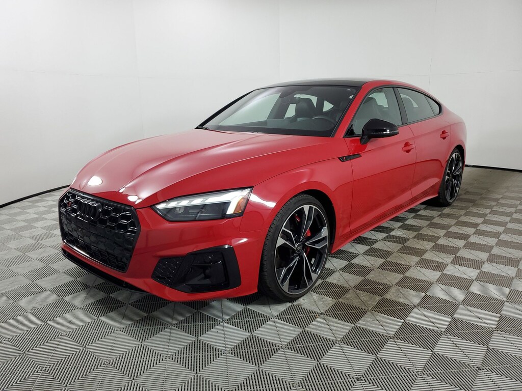 Recent Arrival! 2024 Audi S5 Sportback Premium Plus quattro !! AUDI CERTIFIED !!, ** PREMIUM PLUS **, ** QUATTRO ALL WHEEL DRIVE **, Adaptive Cruise Control, Apple Carplay/Android Auto, Automatic Emergency Braking, Backup Camera, Blind Spot Monitor, Bluetooth, Homelink, Keyless Start, Keyless Entry, Lane Departure Warning, Rear Cross Traffic Alert, Stability Control, USB Port, 2 Rear USB Charge Ports, Audi Virtual Cockpit Plus, Auto-dimming Rear-View mirror, Bang & Olufsen Sound System w/3D Sound, Black Audi Rings & Badges, Black Exterior Mirror Housings & Exhaust Tips, Black Exterior Trim, Black Fender Badges, Black Optic Plus Package, Black Rear Lip Spoiler, Brake assist, Convenience Package, Electronic Stability Control, Exterior Parking Camera Rear, Fine Nappa Leather Seating Surfaces, Front dual zone A/C, Front fog lights, Heated Front S Sport Seats, Illuminated entry, Leather Shift Knob, Leather steering wheel, Leatherette Covered Center Console & Door Armrests, Power Folding Exterior Mirrors, Power Liftgate, Power moonroof, Premium Plus Package, Rain sensing wipers, Red Brake Calipers, Remote keyless entry, S Sport Package, SiriusXM w/360L, Speed-sensing steering, Speed-Sensitive Wipers, Sport Adaptive Damping Suspension, Sport Rear Differential, Steering wheel mounted audio controls, Top View Camera System, Traction control, Wheels: 20" 5-Twin-Spoke Polygon Design, Wireless Phone Charging Pad. Progressive Red Metallic 3.0L TFSI quattro 8-Speed Automatic with Tiptronic