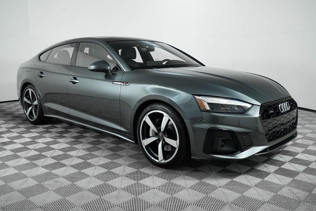 Recent Arrival! 2025 Audi A5 Sportback 45 S line Premium Plus quattro !! AUDI CERTIFIED !!, ** PREMIUM PLUS **, ** QUATTRO ALL WHEEL DRIVE **, Adaptive Cruise Control, Apple Carplay/Android Auto, Automatic Emergency Braking, Backup Camera, Blind Spot Monitor, Bluetooth, Homelink, Keyless Start, Keyless Entry, Lane Departure Warning, Rear Cross Traffic Alert, Stability Control, USB Port, Alarm System w/Motion Sensor, Audi Advanced Key, Audi Beam-Rings (4 Rings), Audi connect NAV & PLUS, Audi MMI Navigation Plus, Audi Side Assist w/Pre Sense Rear, Audi Virtual Cockpit Plus, Auto-Dimming Power Folding Exterior Mirrors, Auto-dimming Rear-View mirror, Bang & Olufsen Sound System w/3D Sound, Brake assist, Electronic Stability Control, Exterior Parking Camera Rear, Front dual zone A/C, Front fog lights, Heated Front Sport Seats, Heated steering wheel, Illuminated entry, Leather Shift Knob, Leather steering wheel, Leatherette Covered Center Console & Door Armrests, LED Interior Lighting Plus Package, Memory for Driver's Seat, Power Liftgate, Power moonroof, Premium Plus, Rain sensing wipers, Remote keyless entry, SiriusXM w/360L, Speed-sensing steering, Speed-Sensitive Wipers, Steering wheel mounted audio controls, Top View Camera System, Traction control, Traffic Sign Recognition, Wheels: 19" 5-Arm-Cutter Design Bi-Color Finish, Wireless Phone Charging Pad. Daytona Gray Pearl Effect 2.0L 4-Cylinder TFSI quattro 7-Speed Automatic S tronic