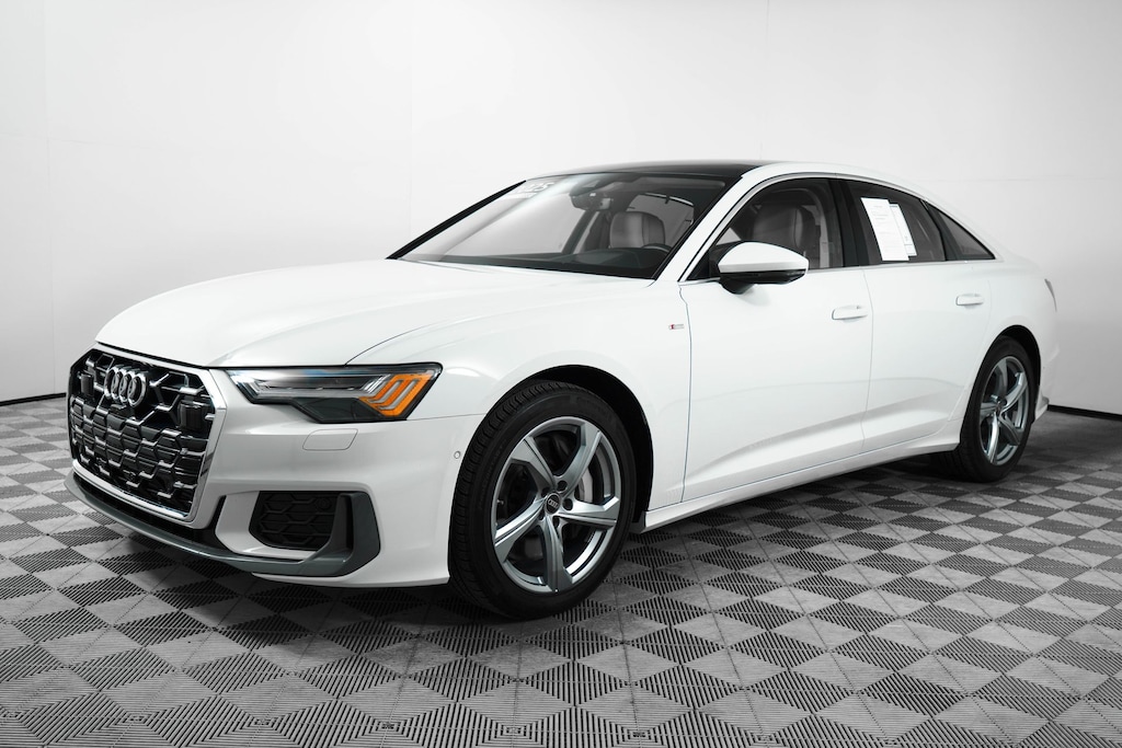 Recent Arrival! 2025 Audi A6 55 Prestige quattro !! AUDI CERTIFIED !!, ** QUATTRO ALL WHEEL DRIVE **, Apple Carplay/Android Auto, Automatic Emergency Braking, Bluetooth, Homelink, Keyless Start, Lane Departure Warning, quattro, Pearl Beige w/Valcona/Milano Leather Seating Surfaces, 4-Zone Automatic Climate Control, ABS brakes, Adaptive Cruise Assist w/Lane Guidance, Alloy wheels, AM/FM radio: SiriusXM w/ 360L, Animation for Headlights & Taillights, Audi Side Assist w/Pre Sense Rear, Auto tilt-away steering wheel, Auto-dimming door mirrors, Auto-dimming Rear-View mirror, Bang & Olufsen Premium Sound System w/3D Sound, Brake assist, Compass, Contrast Stitching on Door Armrests & Knee Bolster, Dual-Pane Acoustic Glass for Side Windows, Electronic Stability Control, Exterior Parking Camera Rear, Front dual zone A/C, Front fog lights, HD Matrix-Design LED Headlights, Head-Up Display, Headlight Washers, Heated door mirrors, Heated Front Seats, Heated front seats, Heated Rear Seats, Heated Steering Wheel, Illuminated entry, Individual Contour Front Seats, Intersection Assist, Leather Airbag Cap, Leather Package, Leather Shift Knob, Leather steering wheel, LED Interior Lighting Plus Package, Low tire pressure warning, Navigation system: Audi MMI Navigation plus with Touch Response, Open & Close Power Trunk, Power moonroof, Power Rear Window Sunshade, Power Soft-Closing Doors, Prestige Package, Rain sensing wipers, Remote keyless entry, Remote Park Assist Plus, Security system, Speed-sensing steering, Speed-Sensitive Wipers, Steering wheel memory, Steering wheel mounted audio controls, Top View Camera System w/Virtual 360 View, Traction control, Valcona/Milano Leather Seating Surfaces, Wheels: 19" 5-Arm Platinum Gray Dynamic Design, Wireless Phone Charging Pad. Glacier White Metallic 3.0L V6 Turbocharged DOHC 24V LEV3-ULEV70 335hp quattro 7-Speed Automatic