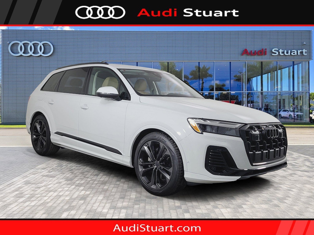The 2026 Audi Q7 55 TFSI quattro delivers an exceptional blend of luxury, performance, and family-ready versatility. Finished in Glacier White Metallic with a refined Saiga Beige interior, this Q7 is equipped with the Premium Plus Package for advanced technology and enhanced comfort, along with the Black Optic Package for bold exterior styling. Additional highlights include the Towing Package for added capability, Illuminated Front Audi Rings, Audi Cargo Box, Audi Beam Rings (Front & Rear Doors), Q7 Mat Kit with Cargo Mat and Touchscreen Cloth, and Privacy Trunk Cover. Powered by Audis legendary quattro all-wheel drive system, the Q7 offers confident handling, smooth performance, and premium refinement for every journey.