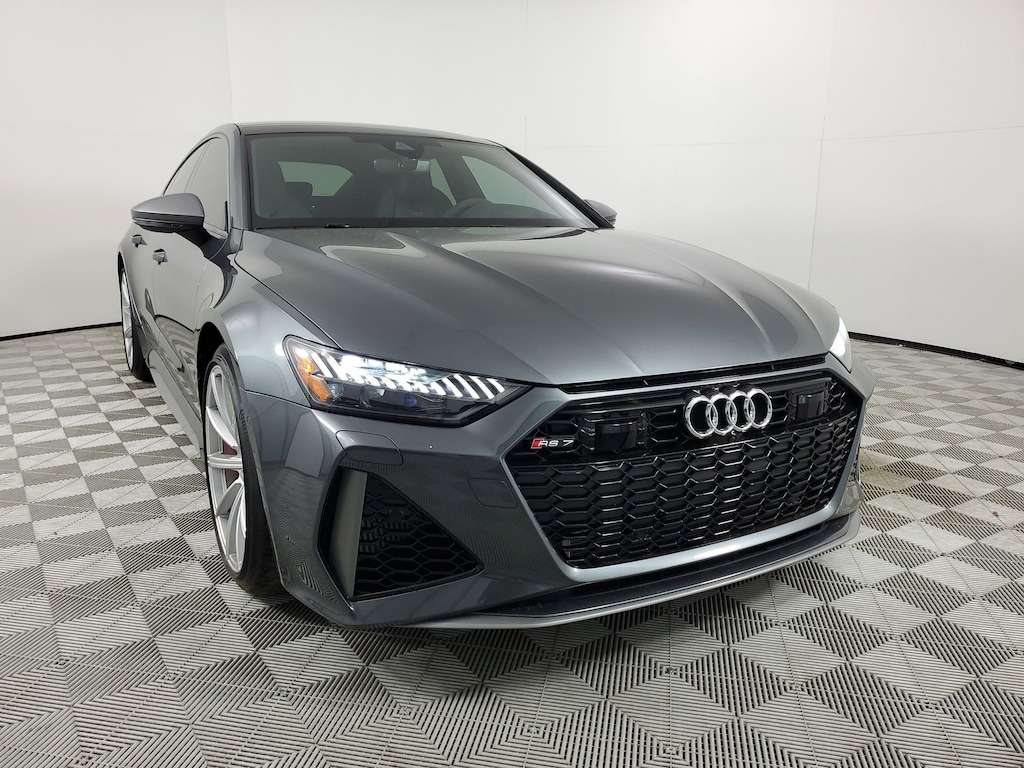 Finished in Daytona Gray Pearl Effect with a Black interior and bold Express Red stitching, this 2026 RS 7 Performance is the pinnacle of dynamic luxury. Featuring a sport exhaust, red brake calipers, Black Dinamica headliner, Executive and Driver Assistance packages, Design Selection interior in red, and Audi Guard Protection Kit plus No Added Import Fee it delivers electrifying performance, cutting-edge technology, and uncompromised refinement in every detail.