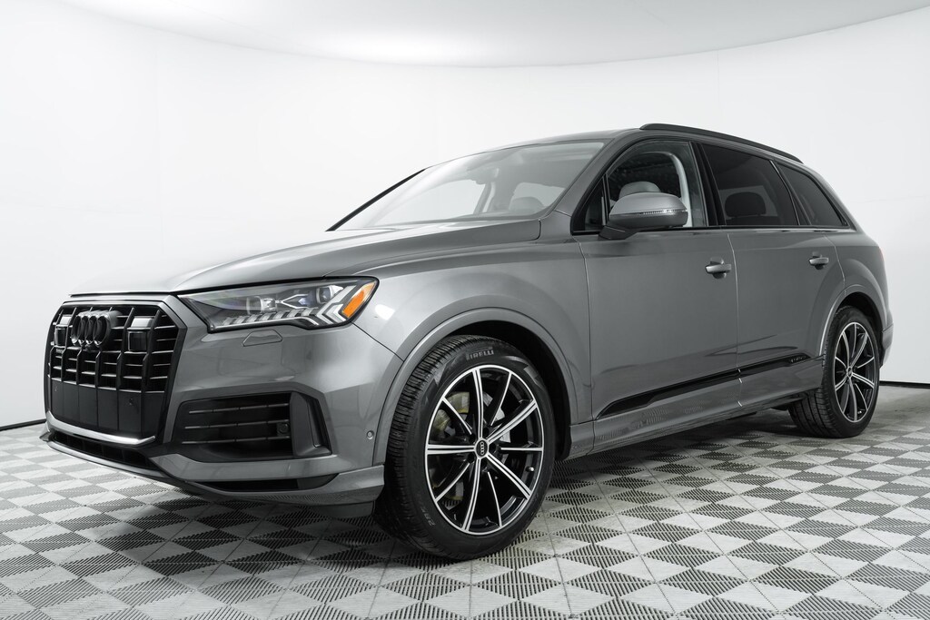 Recent Arrival! 2022 Audi Q7 55 Prestige quattro !! AUDI CERTIFIED !!, ** CLEAN CARFAX **, ** QUATTRO ALL WHEEL DRIVE **, Apple Carplay/Android Auto, Automatic Emergency Braking, Backup Camera, Blind Spot Monitor, Bluetooth, Homelink, Keyless Start, Keyless Entry, Lane Departure Warning, Rear Cross Traffic Alert, Stability Control, USB Port, 3rd row seats: bench, Adaptive Cruise Assist w/Lane Guidance, All-Wheel Steering, AM/FM radio: SiriusXM, Audi Beam Rings, Auto-dimming door mirrors, Auto-dimming Rear-View mirror, Bang & Olufsen 3D Premium Sound System, Black Audi Rings & Badges, Black Optic Package, Brake assist, Comfort Adaptive Air Suspension, Convenience Package, Dual-Pane Acoustic Side Windows, Electronic Stability Control, Executive Package, Exterior Parking Camera Rear, Front dual zone A/C, Front fog lights, Fully automatic headlights, Head-Up Display, Heated Front Bucket Seats, Illuminated Door Sills, Illuminated entry, Intersection Assist, Leather Shift Knob, Leather steering wheel, Matrix-Design LED Headlights, Memory seat, Navigation system: Audi MMI Navigation plus with Touch Response, Power Liftgate, Power moonroof: Panoramic, Power Soft-Closing Doors, Prestige Package, Rain sensing wipers, Rear fog lights, Remote keyless entry, Security system, Speed-sensing steering, Steering wheel memory, Steering wheel mounted audio controls, Traction control, Traffic Sign Recognition, Wheels: 21" 10-Spoke-Star-Design Bi-Color Black. Samurai Gray Metallic 3.0L TFSI quattro 8-Speed Automatic with Tiptronic