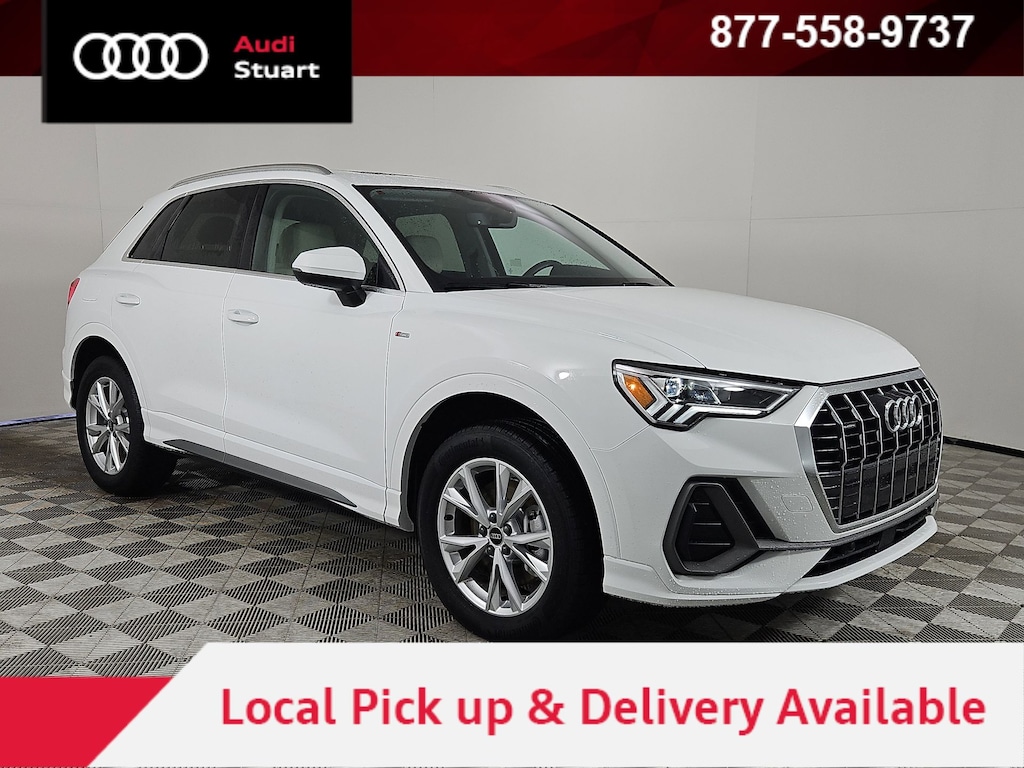 Recent Arrival! 2025 Audi Q3 Premium S Line quattro !! AUDI CERTIFIED !!, ** PREMIUM PLUS **, ** CLEAN CARFAX **, ** QUATTRO ALL WHEEL DRIVE **, Adaptive Cruise Control, Apple Carplay/Android Auto, Automatic Emergency Braking, Backup Camera, Blind Spot Monitor, Bluetooth, Homelink, Keyless Start, Keyless Entry, Lane Departure Warning, Rear Cross Traffic Alert, Stability Control, USB Port, 10 Speakers, Alarm with Motion Sensor, Audi Advanced Key, Audi Beam-Rings, Auto-Dimming Power-Folding Exterior Mirrors, Auto-Dimming Rear-View Mirror, Brake assist, Convenience Package, Driver Seat Memory, Electronic Stability Control, Exterior Parking Camera Rear, Front dual zone A/C, Front fog lights, Fully automatic headlights, Garage Door Opener (HomeLink), Heated Front Bucket Seats, Illuminated entry, Leather Shift Knob, Leather steering wheel, LED Interior Lighting Package, Power Liftgate, Power moonroof: Panoramic, Radio: Audi Sound System, Rain sensing wipers, Remote keyless entry, SiriusXM with 360L (3 Months Trial), Speed-sensing steering, Steering wheel mounted audio controls, Traction control, Wheels: 18" 5-V-Spoke-S Design, Wireless Phone Charging Pad. Arkona White 2.0L 4-Cylinder TFSI quattro 8-Speed Automatic with Tiptronic