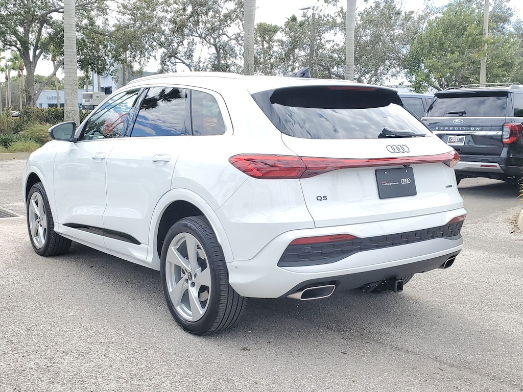 Recent Arrival! 2025 Audi Q5 2.0T Premium Plus quattro !! AUDI CERTIFIED !!, ** PREMIUM PLUS **, ** CLEAN CARFAX **, ** QUATTRO ALL WHEEL DRIVE **, Adaptive Cruise Control, Apple Carplay/Android Auto, Automatic Emergency Braking, Backup Camera, Bluetooth, Heated Steering Wheel, Homelink, Keyless Start, Keyless Entry, Lane Departure Warning, Rear Cross Traffic Alert, Stability Control, USB Port, Atlas Beige w/Leather Seating Surfaces, 20" Wheel Package with 5-Arm Design, Adaptive Cruise Assist, AM/FM radio: SiriusXM w/360L, Animation For Headlights and Taillights, Audi Beam-Rings, Auto tilt-away steering wheel, Auto-dimming door mirrors, Auto-dimming Rear-View mirror, Bang & Olufsen Sound System with 3D Sound, Beige Warm Weather Package, Brake assist, Dynamic Interaction Light, Electronic Stability Control, Exterior Parking Camera Rear, Front dual zone A/C, Front fog lights, Head-Up Display, Headlight Washers, Heated Front Bucket Seats, Heated Steering Wheel with Hands-on Detection, Illuminated entry, Leather steering wheel, LED Headlights Plus with Digital DRL, LED Interior Lighting Pro Package, Light Brown Walnut Trunk Natural Wood Inlays, Manual Rear Side Window Sunshades, Memory seat, Panoramic Sunroof, Power Liftgate, Premium Plus, Rain sensing wipers, Rear fog lights, Remote keyless entry, Security system, Speed-sensing steering, Speed-Sensitive Wipers, Steering wheel mounted audio controls, Top View Camera System, Traction control, Trailer Hitch, USB Power Delivery (2x60W Front and 2x100W Rear), Ventilated Front Sport Seats, Wheels: 20" 5-Arm Design. Glacier White Metallic 2.0L 4-Cylinder TFSI quattro 7-Speed Automatic S tronic