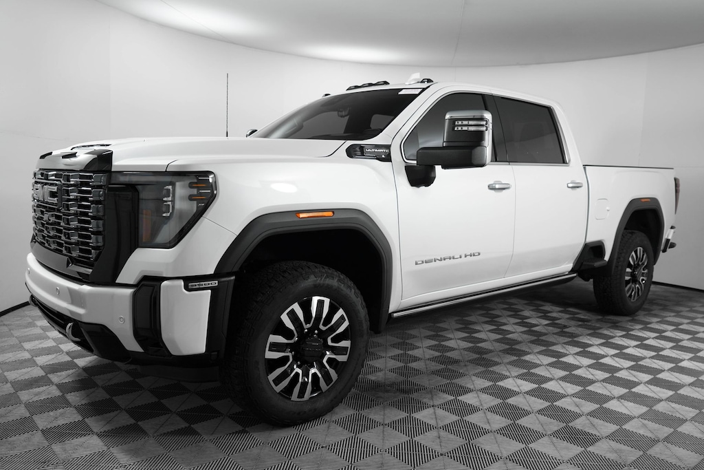 Recent Arrival! 2025 GMC Sierra 3500HD Denali Ultimate ** CLEAN CARFAX **, Apple Carplay/Android Auto, Automatic Emergency Braking, Backup Camera, Bluetooth, Homelink, Keyless Start, Keyless Entry, Rear Cross Traffic Alert, Stability Control, USB Port, 10-Speed Automatic, 4WD, Alpine Umber Leather, 120-Volt Bed Mounted Power Outlet, 120-Volt Instrument Panel Power Outlet, 2 Charge-Only Rear USB Ports, 2 Charge/Data USB Ports Inside Center Console, 2 USB Ports, 2-Speed Active Transfer Case, AM/FM radio: SiriusXM with 360L, Auto-dimming door mirrors, Auto-Dimming Inside Rearview Mirror w/Camera, Auto-dimming Rear-View mirror, Bed View Camera w/2 Trailer Camera Provisions, Bose Premium Series 12-Speaker System, Brake assist, Deep-Tinted Glass, Driver Memory, Electric Rear-Window Defogger, Electronic Stability Control, Exterior Parking Camera Rear, Floor-Mounted Center Console, Front dual zone A/C, Front fog lights, Front Rain-Sensing Wipers, Fully automatic headlights, HD Surround Vision, Heads-Up Display, Heated 2nd Row Outboard Seats, Heated Driver & Front Outboard Passenger Seats, Heated steering wheel, Hill Descent Control, Illuminated entry, Keyless Open & Start, Lane Departure Warning System, Leather steering wheel, LED Cargo Area Lighting, LED Smoked Amber Roof Marker Lamps, Manual Tilt-Wheel/Telescoping Steering Column, Memory seat, Off-Road Suspension, Power Front Windows w/Passenger Express Up/Down, Power moonroof, Power Sliding Rear Window w/Defogger, Power Sunroof, Preferred Equipment Group 5SB, ProGrade Trailering System, Push Button Start, Rear Cross Traffic Alert, Rear Wheelhouse Liners, Remote keyless entry, Remote Vehicle Starter System, Safety Alert Seat, Signature Denali Ultimate Grille in Vader Chrome, SiriusXM w/360L Trial Subscription, Speed-sensing steering, Spray-On Pickup Bedliner w/GMC Logo, Steering Wheel Audio Controls, Steering wheel mounted audio controls, Technology Package, Traction control, Trailer Camera Provisions, Trailer Side Blind Zone Alert, Trailer Tire Pressure Monitor Sensors, Ultrasonic Front & Rear Park Assist, Unauthorized Entry Theft-Deterrent System, Universal Home Remote, Ventilated Driver & Front Passenger Seats, Wireless Charging, Wireless Phone Projection, X31 Off-Road Package. White Frost Tricoat Duramax 6.6L V8 Turbodiesel 4WD 10-Speed Automatic