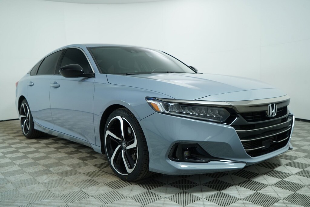 Recent Arrival! 2022 Honda Accord Sport ** CLEAN CARFAX **, Apple Carplay/Android Auto, Automatic Emergency Braking, Backup Camera, Bluetooth, Homelink, Keyless Start, Keyless Entry, Stability Control, USB Port, Black w/fabric with synthetic leather seat trim, Adaptive Cruise Control: Adaptive Cruise Control (ACC) with Low-Speed Follow, Brake assist, Electronic Stability Control, Exterior Parking Camera Rear, Front dual zone A/C, Front fog lights, Fully automatic headlights, Illuminated entry, Lane Departure Warning System, Leather Shift Knob, Leather steering wheel, Power driver seat, Radio data system, Remote keyless entry, Speed-sensing steering, Speed-Sensitive Wipers, Steering wheel mounted audio controls, Traction control, Wheels: 19" Machine-Finished Alloy w/Black Inserts. Sonic Gray Pearl 1.5T I4 DOHC 16V Turbocharged VTEC FWD CVT